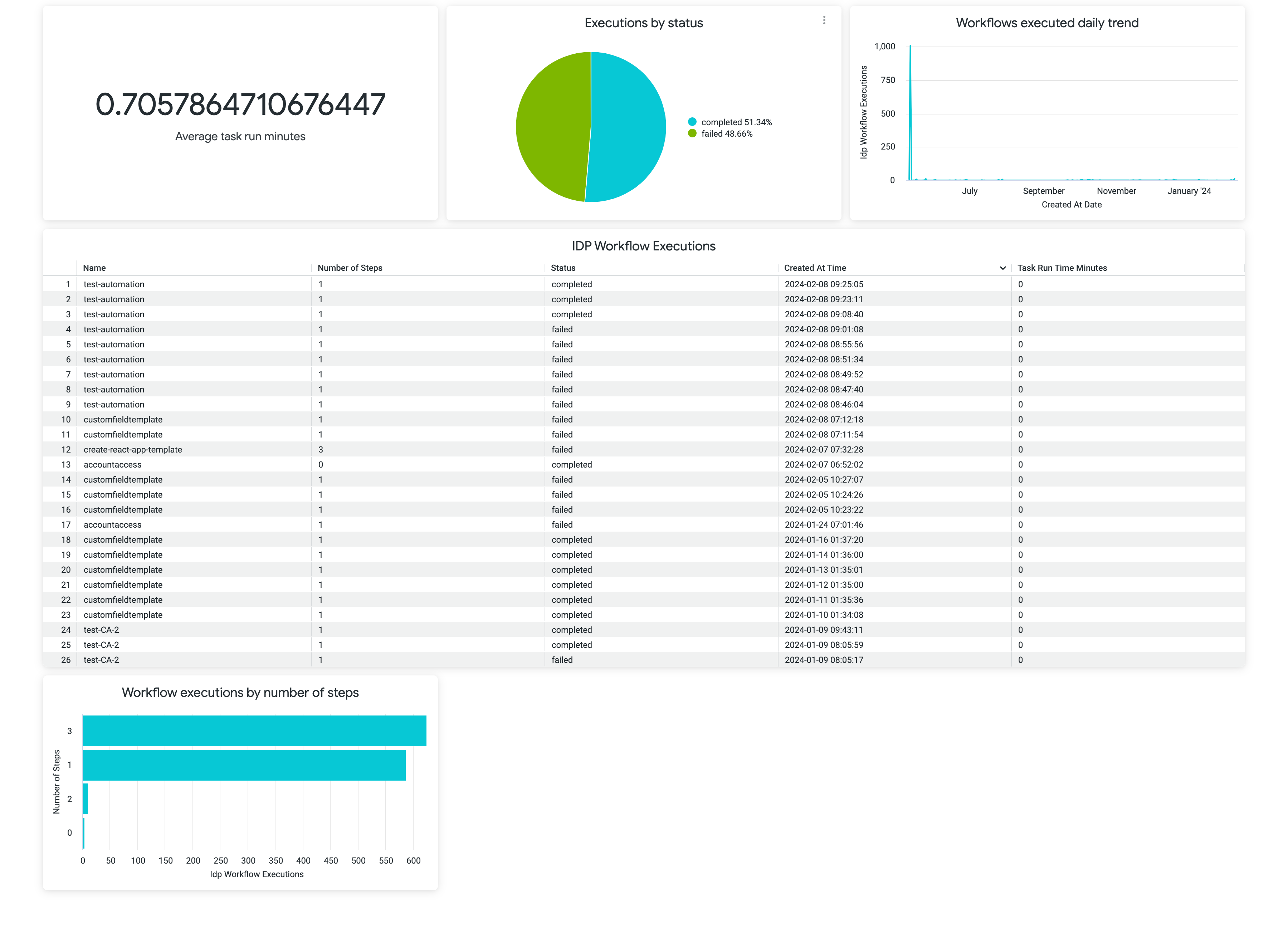 - Dashboard describing the Workflow Execution details
