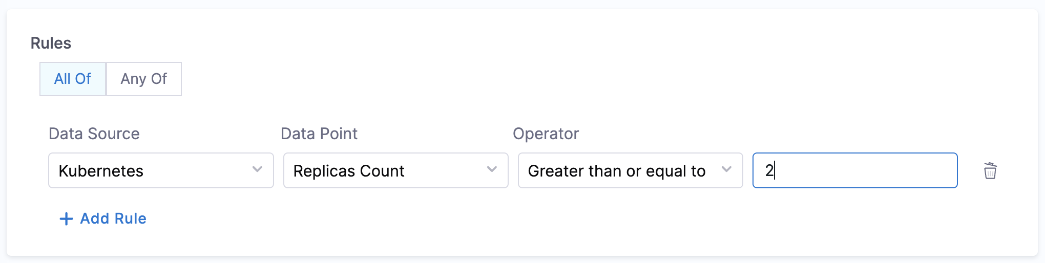 - Is on-call Set - This data point can be used for creating rules that will check if the on-call is set for a given service.