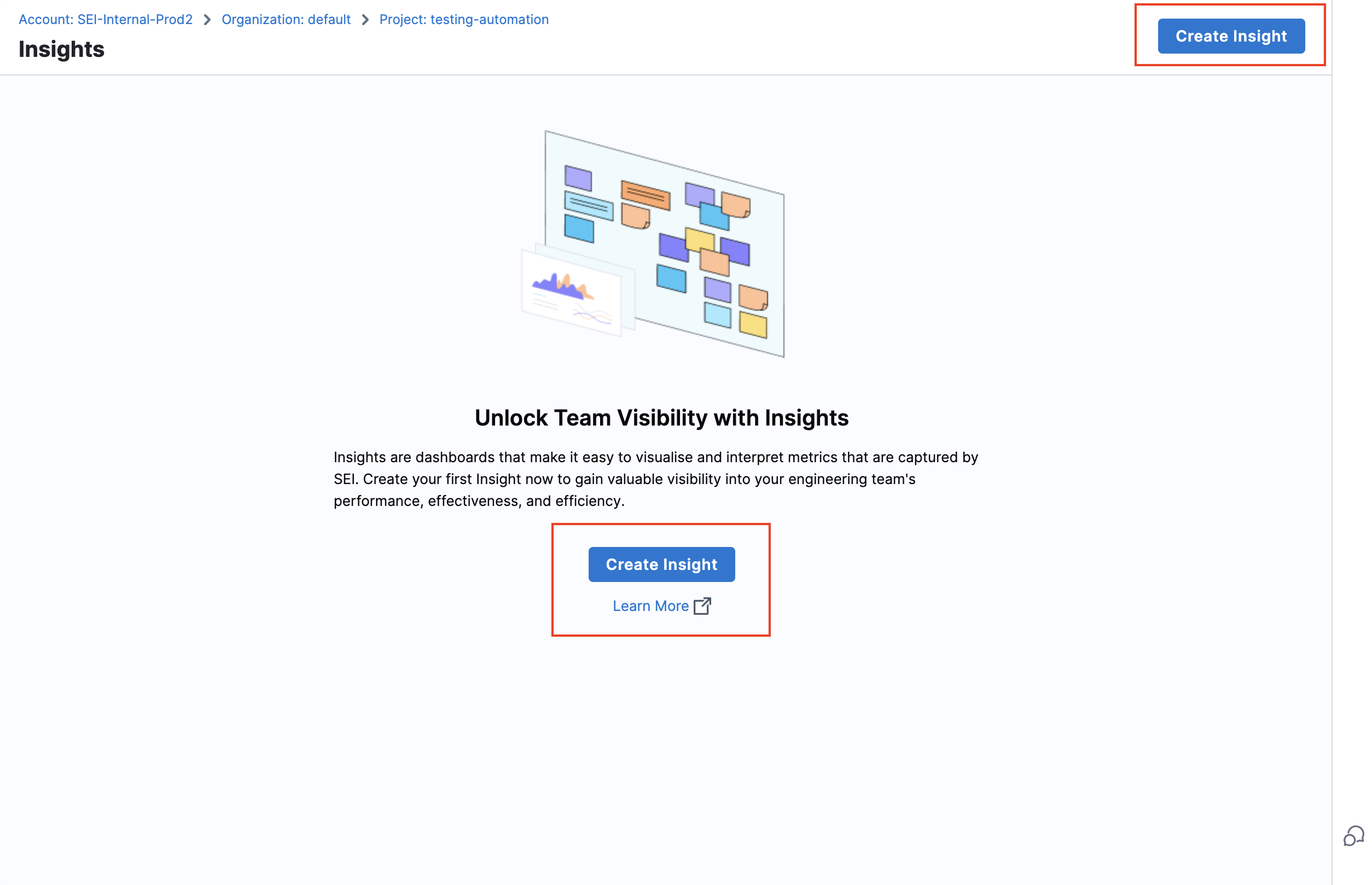 3. If you don't have any existing Insight, then click on the Create Insight button on the landing page to create a new Insight.