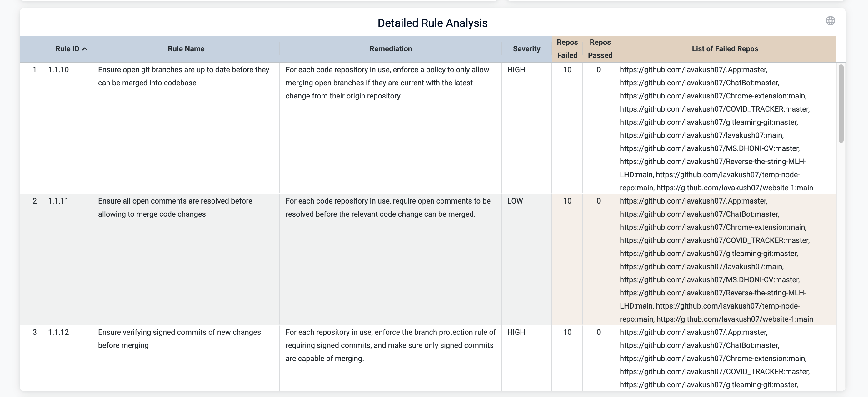 Repos Passed: Number of repositories that passed this rule.