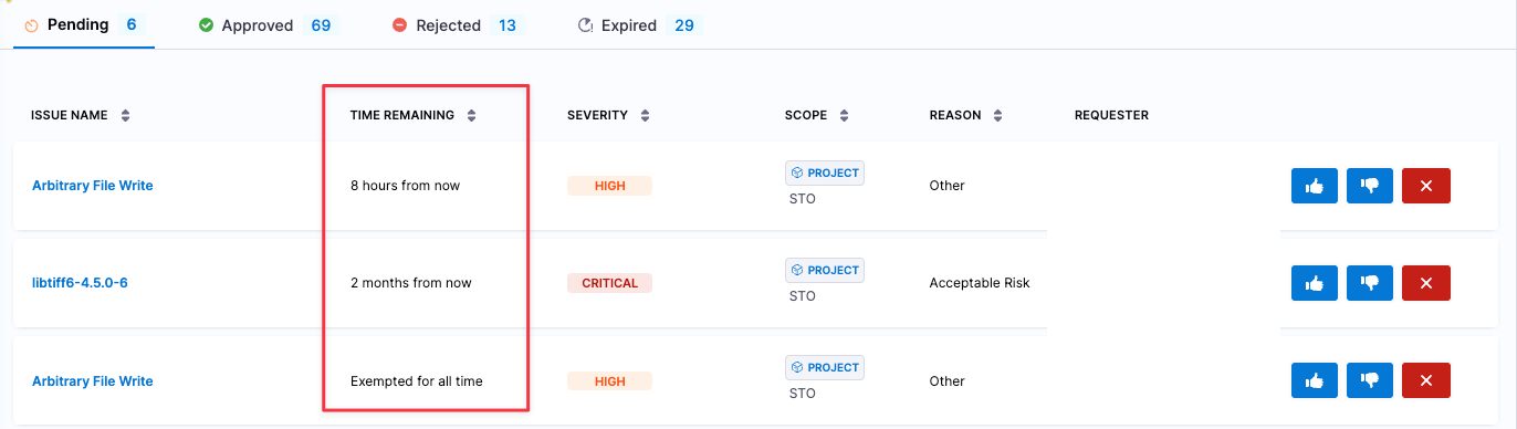 - Dedicated Security Exemptions Section: Ability to grant and manage security exemptions by SecOps owners on identified vulnerabilities or issues during security testing. Exemptions can also be made in the STO Pipeline against specific issues.